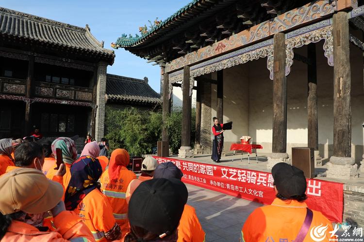 为丰盈环卫工人的精神文化生活,活动特别组织100名环卫工人畅游西海岸新区中国院子文化景区,让常年奔波在保洁一线的工人们卸下疲惫。游览途中,青岛市总工会文艺轻骑兵精心编排“劳动者之歌 共同的家园”文艺节目,在景区戏台前为环卫工人慰问演出。工作的辛劳在美景与欢笑声中消散,大家切实收获了满满的获得感与幸福感。