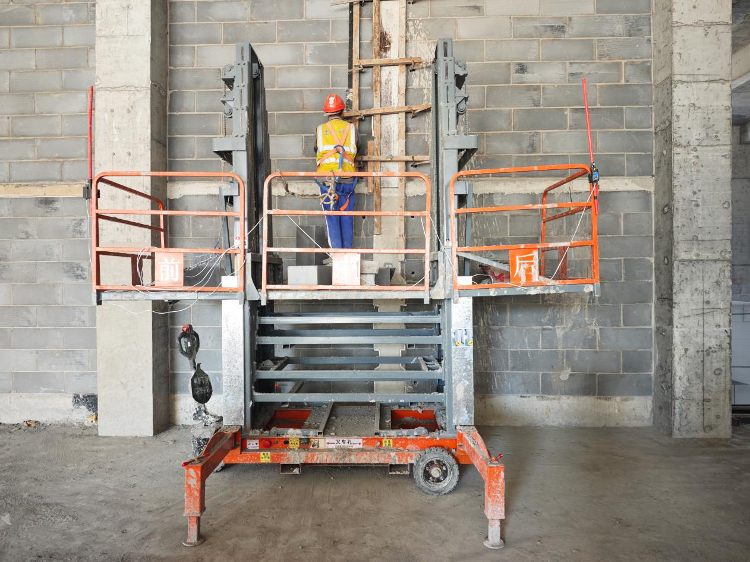 近日,歌尔科技产业项目二期工程引入新型“利器”—砌筑升降车,全面替代传统门式脚手架与简易钢管扣件操作平台,为二次结构砌筑作业带来安全与效率的双重升级。